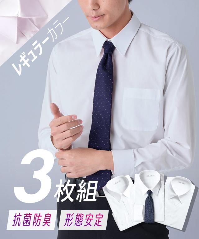 ワイシャツ 大きいサイズ ビジネス メンズ 抗菌防臭形態安定 長袖 3枚組 レギュラー カラー 白 8L ニッセン nissen agesugi_sfa