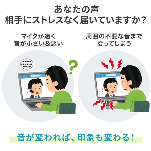 ●ヘッドセット本体にもマイクを搭載し、外出時はヘッドセットのマイク、室内では外付けマイクなど用途によって使い分けができます。