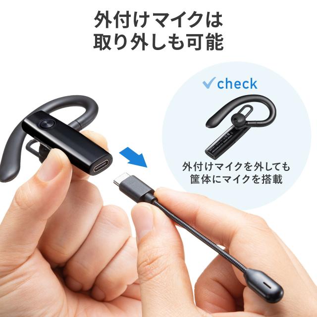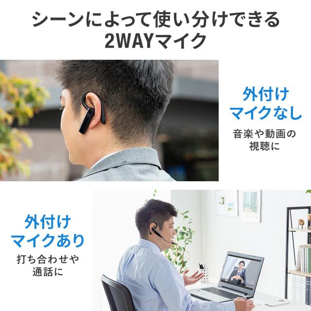 Bluetoothイヤホン 片耳 マイク 通話対応 Zoom Teams対応 口元マイク 音楽対応[400-BTMH024BK]