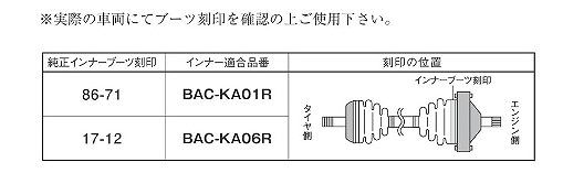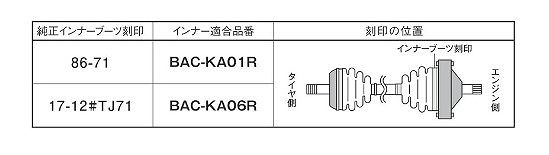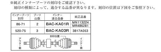 ※リビルト品及び、新車時とは異なるドライブシャフトで修理交換されている車輌の場合は適合が異なる場合がありますので、ご注意下さい。