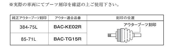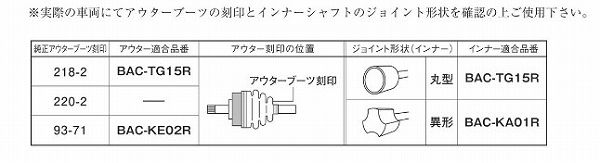 ※リビルト品及び、新車時とは異なるドライブシャフトで修理交換されている車輌の場合は適合が異なる場合がありますので、ご注意下さい。