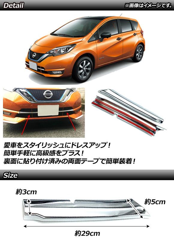 フロントアンダーグリルカバー 日産 ノート E12,HE12,NE12 後期 2016年11月〜 ABS樹脂製 入数:1セット(2個) AP-FG083 AP フロントナンバープレートカバー フロントナンバーサイドガーニッシュ ナンバーガーニッシュ ナンバープレートトリム フロントグリルカバー フロントガーニッシュ バンパーガーニッシュ フロント ナンバー フロントグリル バンパー ライセンスプレート ナンバーサイド ガーニッシュ リム トリム ベゼル 鋼 メッキ メッキパーツ シルバー クローム 銀 silver chrome 傷予防 傷付き防止 外装 外装パーツ パーツ エクステリア ドレスアップ カスタム カスタマイズ 装飾