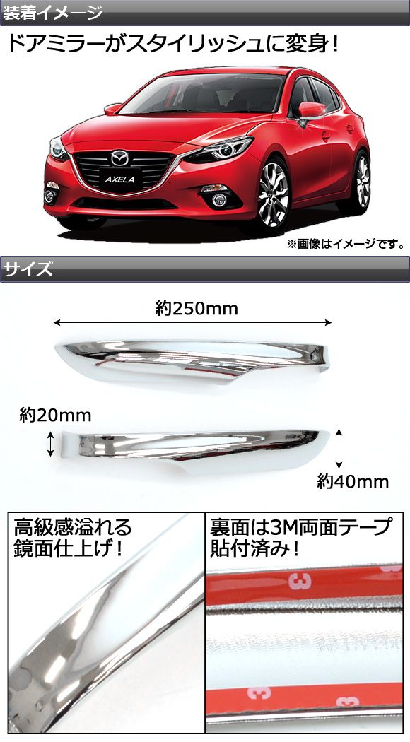 ドアミラーウインカーリム マツダ アクセラスポーツ/セダン/ハイブリッド BM系/BY系 2014年09月〜 鏡面仕上げ 入数:1セット(左右) AP-DMC-M11