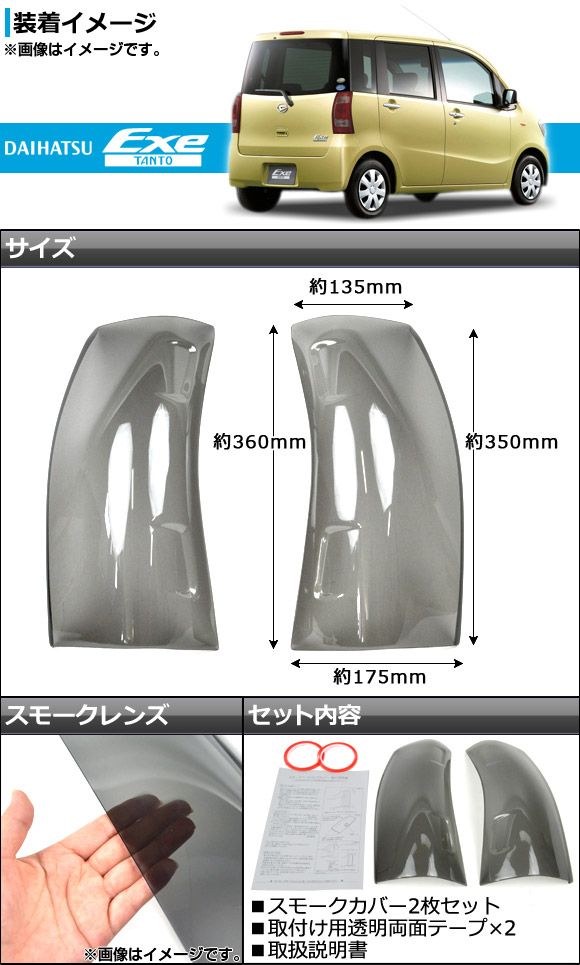 テールライトスモークレンズカバー ダイハツ タントエグゼ L455S/L465S 2009年12月〜 入数:1セット(2枚) AP-SK41