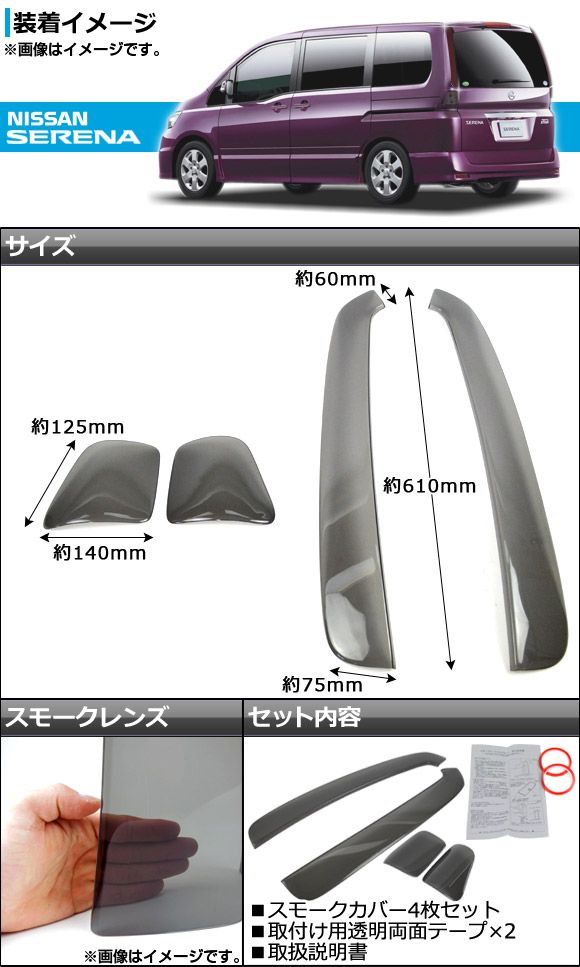 AP テールライトスモークレンズカバー AP-SK18 入数:1セット(4枚) ニッサン セレナ C25 ハイウェイスター 2006年06月〜2010年10月