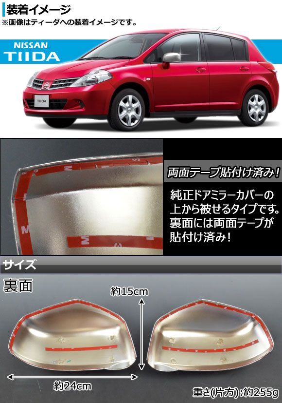 AP ドアミラーカバー AP-MRC-TIIDA 入数:1セット(左右) ニッサン ウイングロード Y12 2005年11月〜 サイドミラーカバー ミラーカバー バックミラー リアビューミラーカバー ティーダ ラティオ テイーダ TIIDA LATIO ウィングロード WINGROAD ドア ミラー カバー サイド ウインカー ウィンカー メッキカバー クロームカバー メッキ シルバー 鏡面 エクステリア メッキパーツ 車用品 カー用品 外装パーツ 両面テープ automobile motorcar オートモービル モーターカー カー 車 自動車 車両 日産自動車