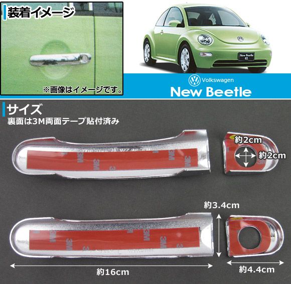 ドアハンドルカバー フォルクスワーゲン ニュービートル 1999年〜2005年 2キーホール 入数:1セット(4個) AP-DHC-NB22B(2K)