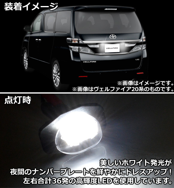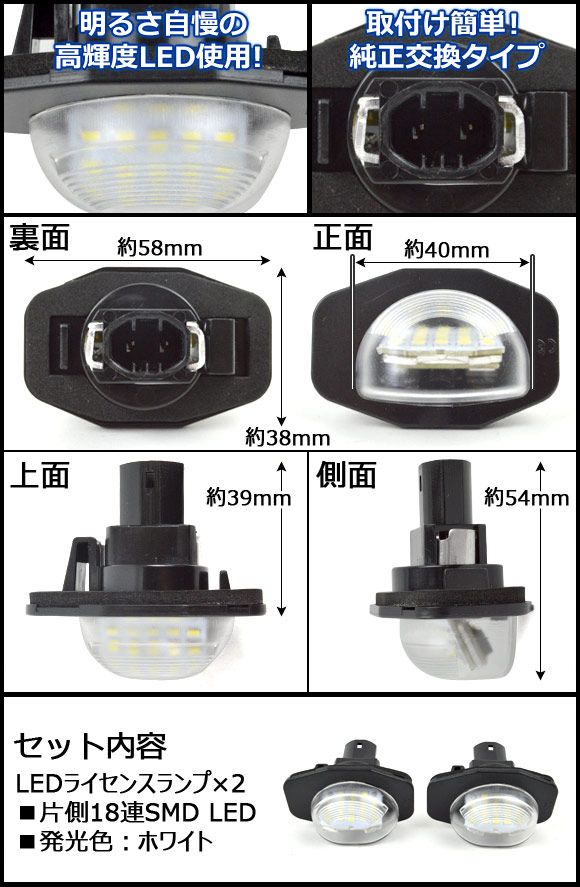 AP LEDライセンスランプ 18連 AP-LC-T18 入数:1セット(2ピース) トヨタ カローラルミオン NZE151,ZRE152,ZRE154 2007年10月〜
