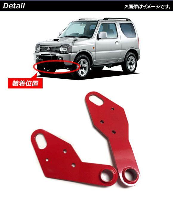 牽引フック スズキ ジムニー/ジムニーワイド/ジムニーシエラ JB23W/JB33W/JB43W 純正バンパー装着車不可 1998年10月〜2018年07月 レッド 6mm厚スチール製 運転席/助手席側 AP-XT1157