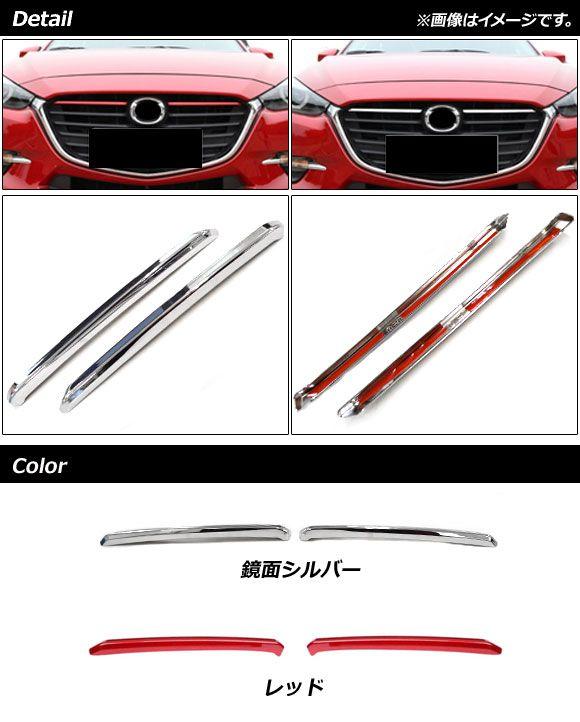フロントグリルカバー マツダ アクセラ セダン/スポーツ/ハイブリッド BM/BY系 後期 2016年07月〜2019年05月 レッド ABS樹脂製 入数:1セット(2個) AP-FG462-RD