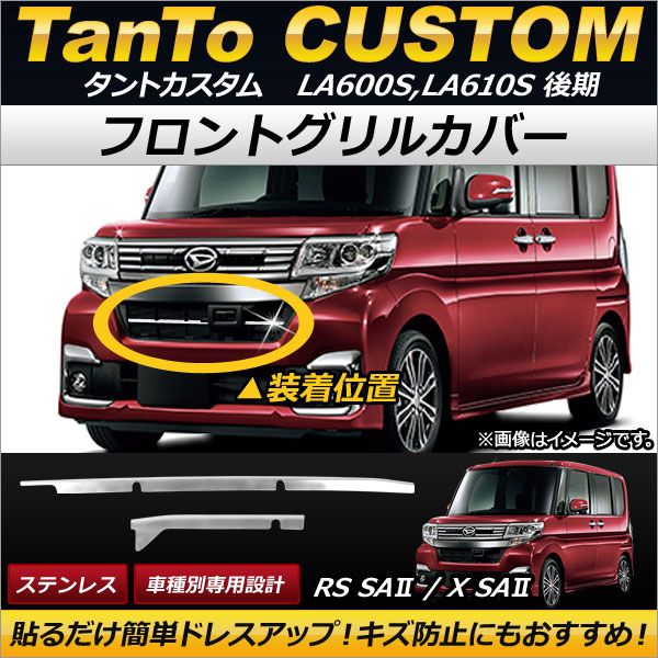 フロントグリルカバー ダイハツ タントカスタム LA600S,LA610S 後期 2015年12月〜 ステンレス AP-FG032 入数:1セット(2個)