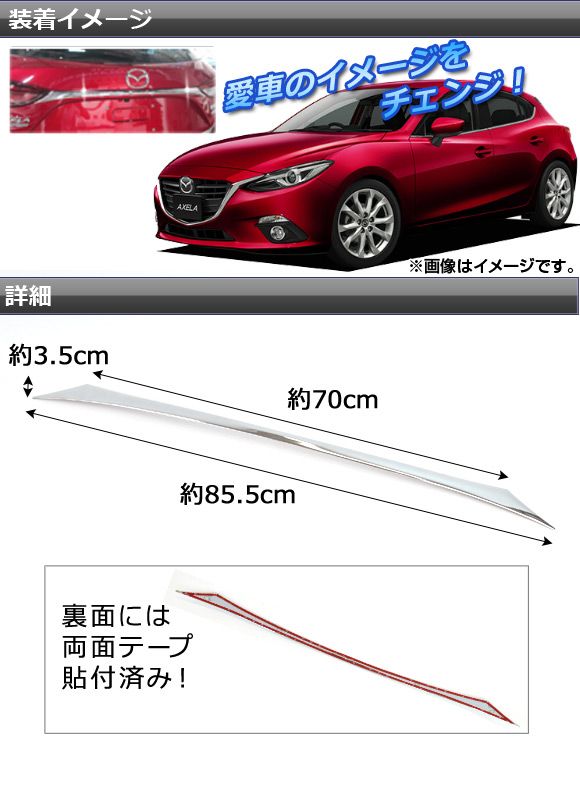 バックドアガーニッシュ マツダ アクセラスポーツ BM系 2013年11月〜 ABS製 鏡面仕上げ APSINA-AXELA025