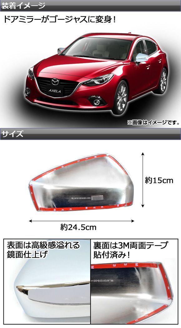 ドアミラーカバー マツダ アクセラスポーツ/セダン/ハイブリッド BM/BY系 2013年11月〜 メッキ ABS 入数:1セット(左右) AP-MC-M12