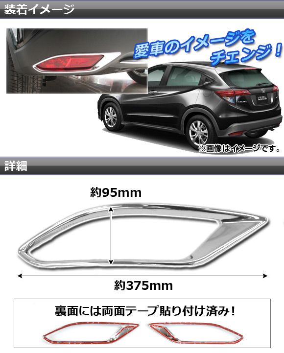 リフレクターガーニッシュ ホンダ ヴェゼル/ヴェゼルハイブリッド RU1,RU2,RU3,RU4 2013年12月〜 ABS樹脂 入数:1セット(左右) APSINA-VEZEL003