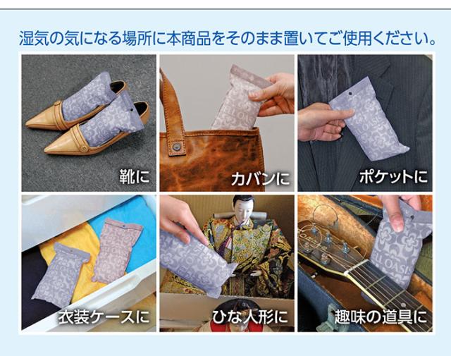 湿気やニオイの気になる衣類やブーツ、バックやスーツの胸ポケットなどいろんな場所で活躍します!
