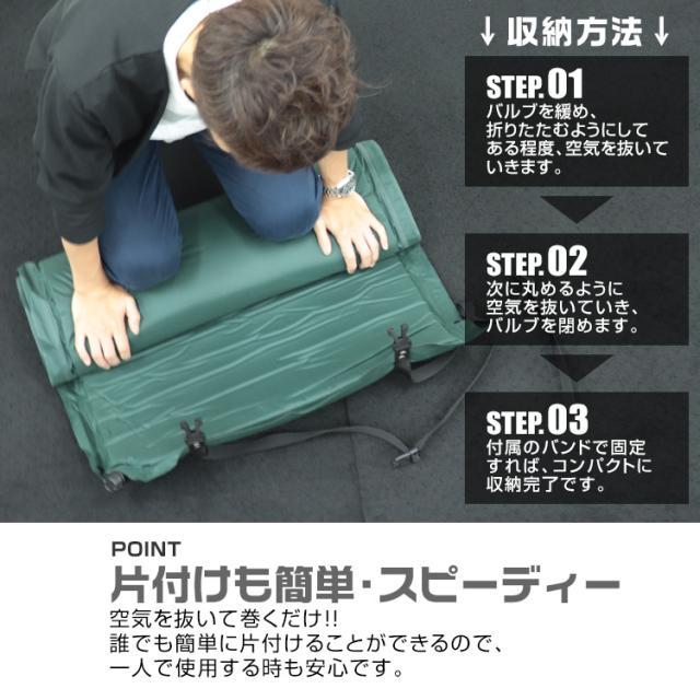 マット上部のバルブを開けば、それだけでマットが自動で膨らむので簡単に設置することができます。
