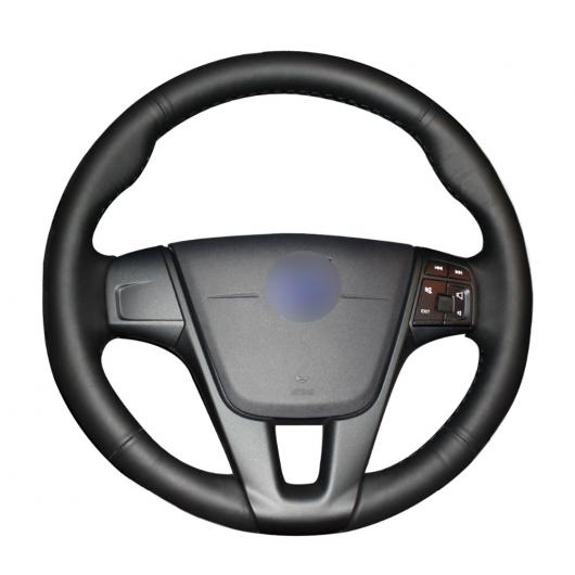 AL 手縫い ブラック PUレザー ステアリング ホイール カバー 適用: ボルボ S60 V40 V60 V70 2014 XC60 ブラック糸〜グレー糸 AL-EE-8089