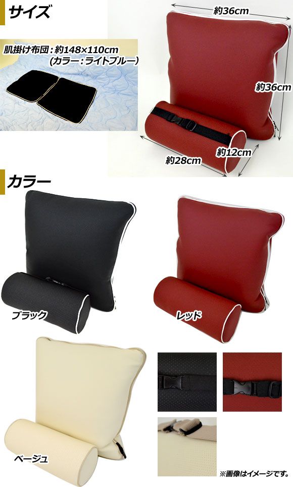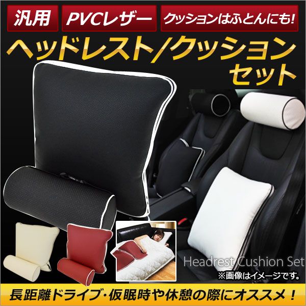 AP ヘッドレスト/クッションセット PVCレザー 汎用 チャックを外すとクッションは肌掛けふとんに! 選べる3カラー AP-AS152 カラー: ブラック レッド ベージュ