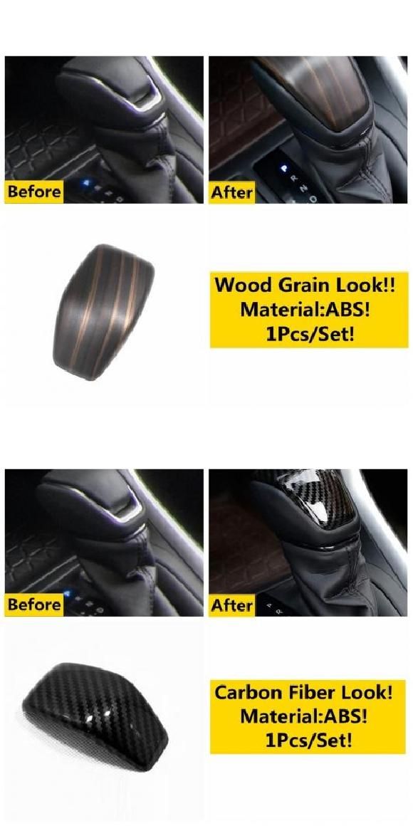 AL インテリア ギア シフト ノブ ヘッド ハンドル カバー トリム A 木目調・C カーボンファイバー 調 AL-OO-5223