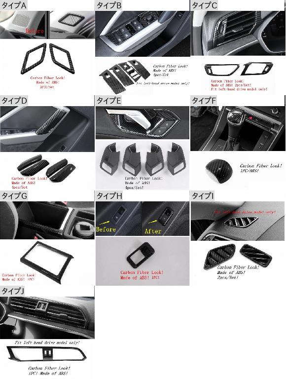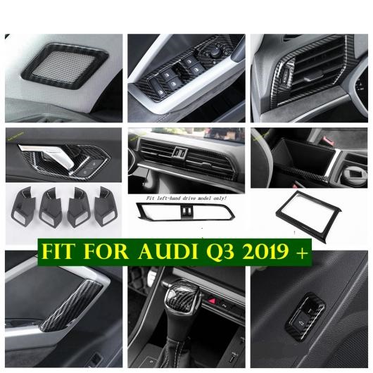 ABS カーボンファイバー インテリア キット ピラー A スピーカー ギア ボックス カップホルダー ドア ハンドル ボウル カバー トリム 適用: アウディ/AUDI Q3 2019-2022