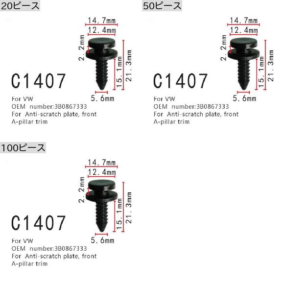 AL オート フロント Aピラー トリム ファスナー 3B0867333 適用: VW T5 アウディ/AUDI A3 ポルシェ/PORSCHE カイエン 955 傷防止 プレート インテリア バックル 20ピース AL-MM-0848