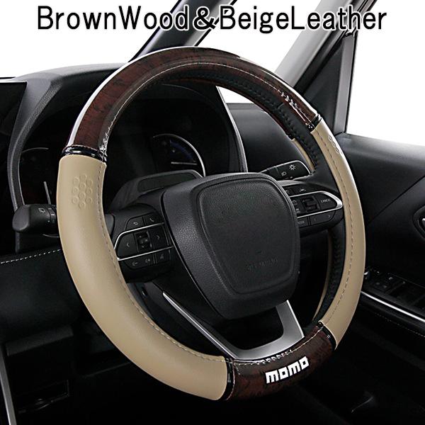 MOMO ステアリングカバー ハンドルカバー 軽自動車 コンパクトカー ミニバン モモ ラグジュアリーウッド ブラウン ブラック ベージュ Sサイズ36.5〜37.9cm Mサイズ38〜39cm フェリスヴィータ