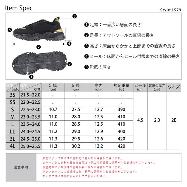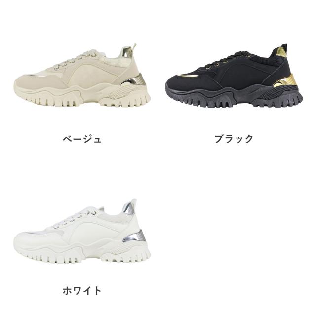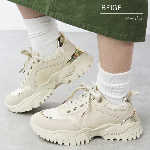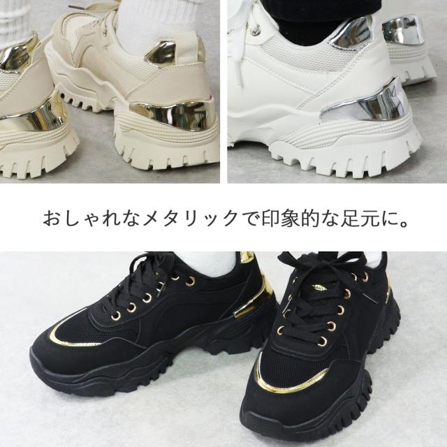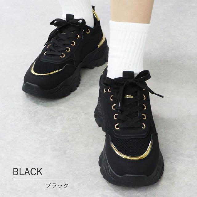 シューズ スニーカー ローカットスニーカー ダッドシューズ ダッドスニーカー レディース 靴 厚底 インソール 疲れにくい 歩きやすい 紐靴 4.5cmヒール 22.5cm〜25.5cm 黒 ブラック ラブハンター No.1579