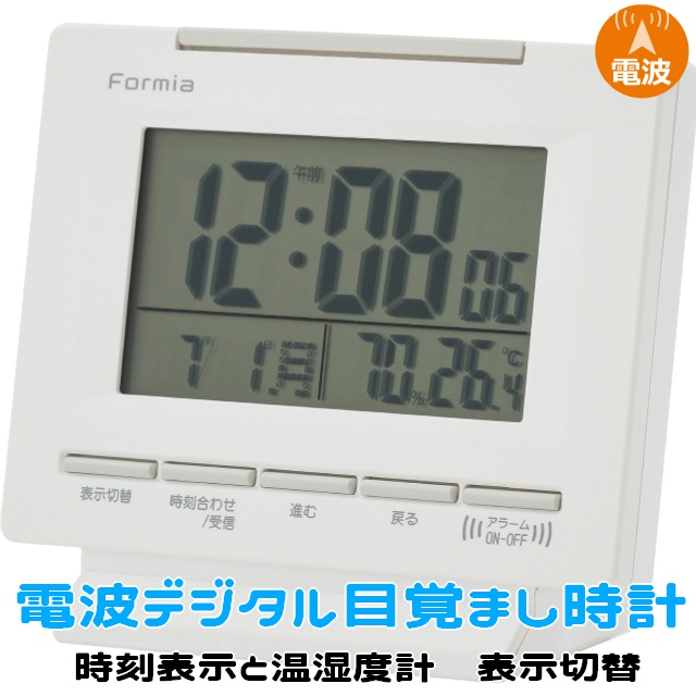電波デジタル目覚まし時計 温湿度計 カレンダー表示 スヌーズ Formia フォルミア 置き時計 HT-018RC