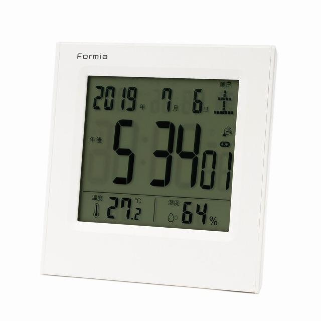 電波デジタル目覚まし時計 カレンダー 温度計 湿度計付き デジタルクロック Formia フォルミア 置き時計 HT-009RC