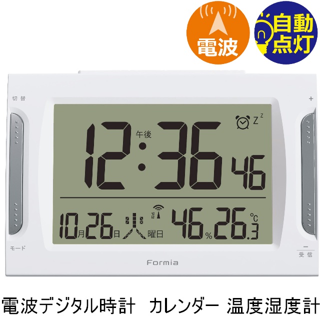 Formia フォルミア 電波デジタル時計 目ざまし時計 HT-021RC カレンダー 温度計 湿度計 表示 自動点灯