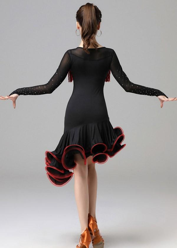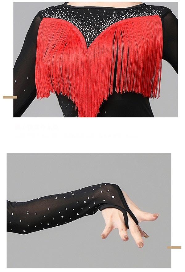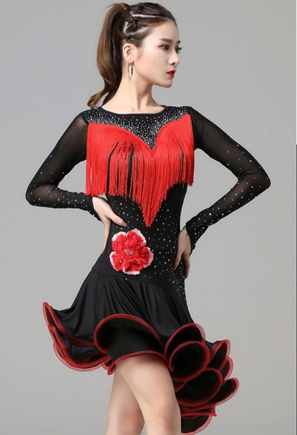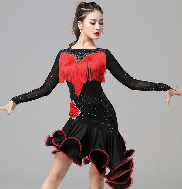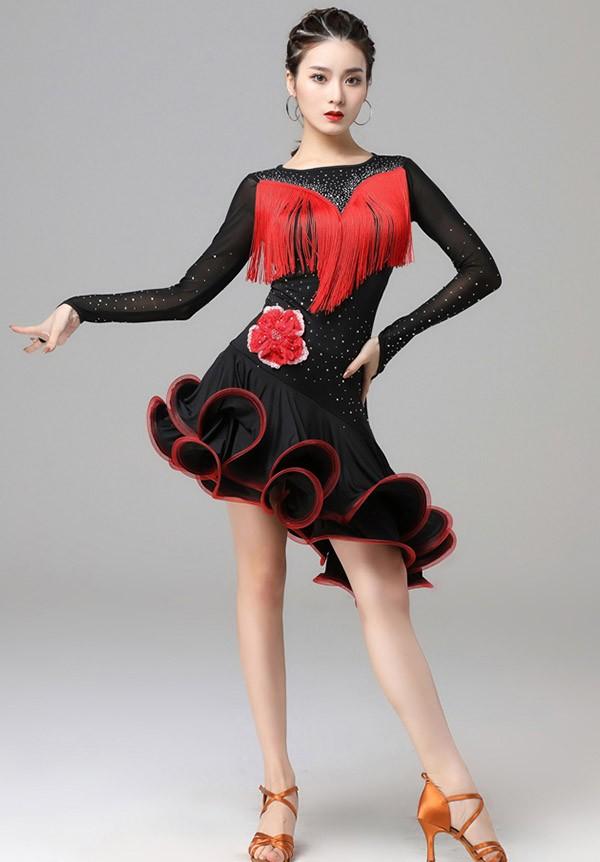 ラテン衣装 チャチャチャ 社交ダンス ラテンドレス 長袖 ワンピース セクシー キャバ 練習服 ラテンダンス ラテン競技着 練習着 ダンス 演出 ルンバ サンバ フリンジ ml145zezela