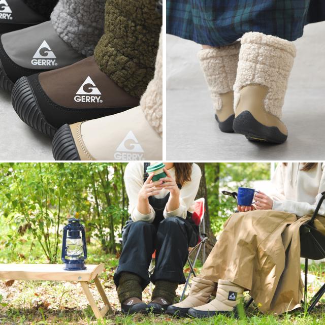 キャンプ 靴 レディース ミドル丈 ミドルブーツ ボア モコモコ ブーツ スノーブーツ アウトドアシューズ GERRY 撥水 軽量 歩きやすい 防寒 大きいサイズ