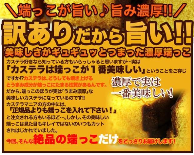 ●濃厚で実は一番美味しい!正規品をカットする時に出てしまう端っこ訳ありカステラ。