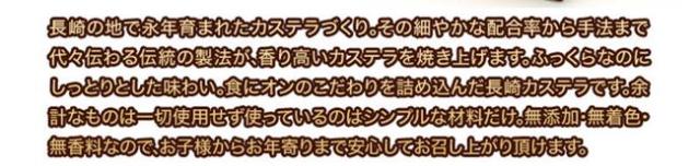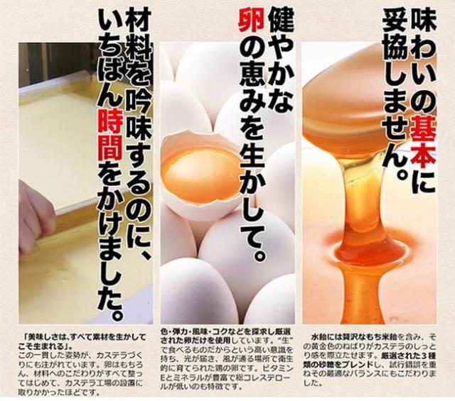 原材料名:卵(長崎県)、砂糖、小麦粉、もち米あめ、水あめ、ざらめ糖