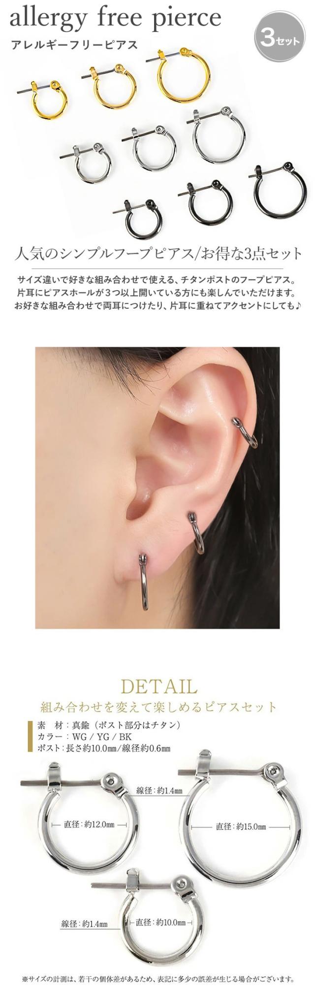 ピアス メンズ 金属アレルギー対応 フープ アレルギーフリー 3点 セット セカンドピアス 小さめ チタン ポスト フープピアス リング 両耳 片耳 ゴールド プラチナ ガンメタ ブラック 小ぶり シルバー アレルギー対応 男女兼用 輪っか ペア ギフト クリスマス プレゼント
