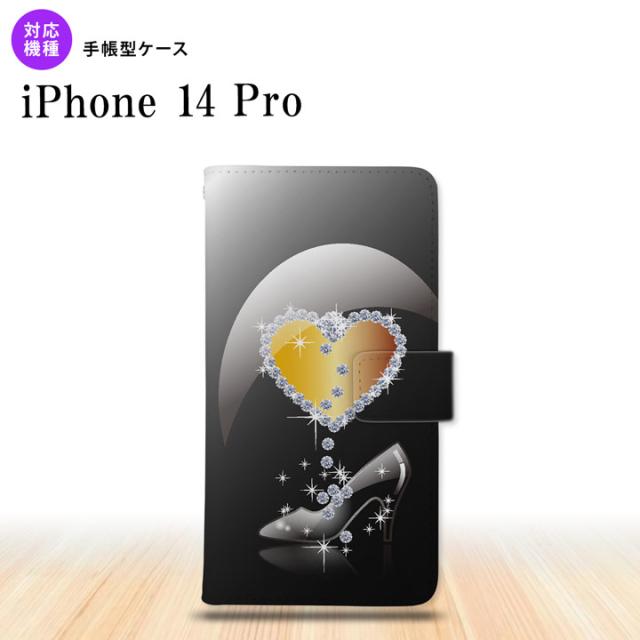 iPhone14 Pro iPhone14 Pro 手帳型スマホケース カバー ハート ガラスの靴 黒 nk-004s-i14p-dr236