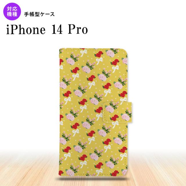 iPhone14 Pro iPhone14 Pro 手帳型スマホケース カバー 花柄 バラ リボン 黄 nk-004s-i14p-dr263