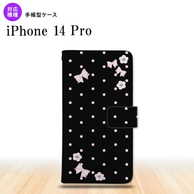 iPhone14 Pro iPhone14 Pro 手帳型スマホケース カバー 花柄 ドット リボン 黒 nk-004s-i14p-dr352
