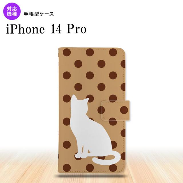 iPhone14 Pro iPhone14 Pro 手帳型スマホケース カバー 猫 水玉 ベージュ 茶