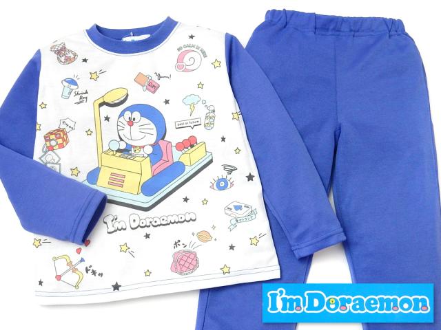 【送料無料】男児 キッズ ダンボールニット 長袖 パジャマ ドラえもん 上下組 配色切替 子供服 男の子 td-0529【メール便対応】