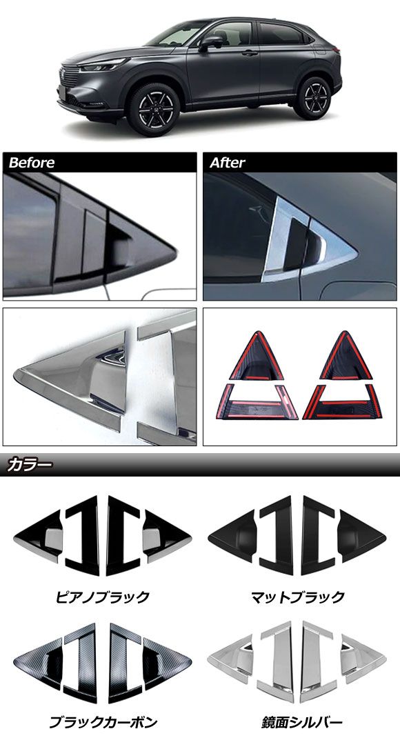 リアドアハンドルガーニッシュ ホンダ ヴェゼル RV系 2021年04月〜 鏡面シルバー ABS製 入数:1セット(4個) AP-XT1217-A-KSI