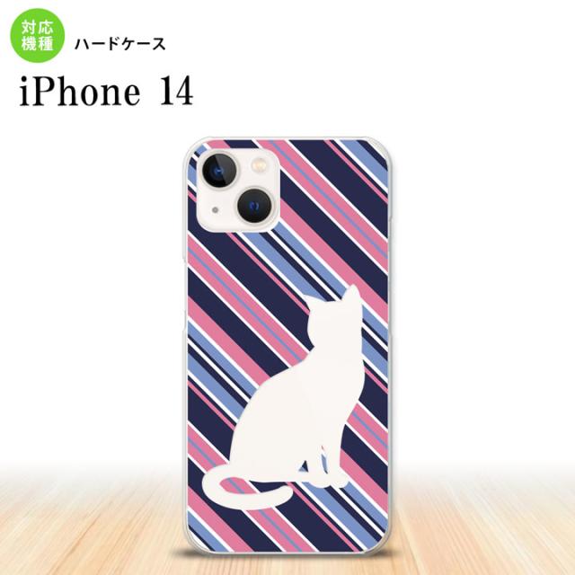 iPhone14 iPhone14 スマホケース 背面ケース ハードケース 猫 ボーダー B 青ピンク 2022年 9月発売 nk-i14-966