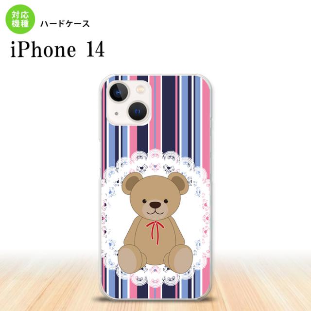iPhone14 iPhone14 スマホケース 背面ケース ハードケース くま ストライプ レース 青 ピンク 2022年 9月発売 nk-i14-759