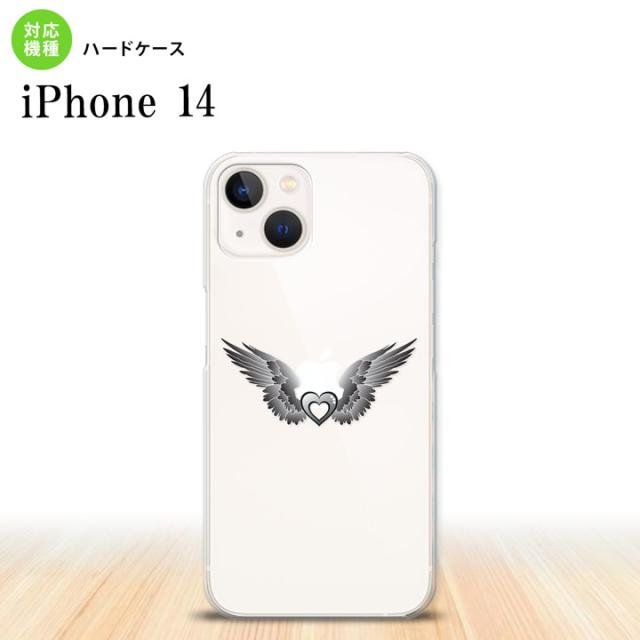 iPhone14 iPhone14 スマホケース 背面ケース ハードケース 黒翼 ハート グレー 2022年 9月発売 nk-i14-466