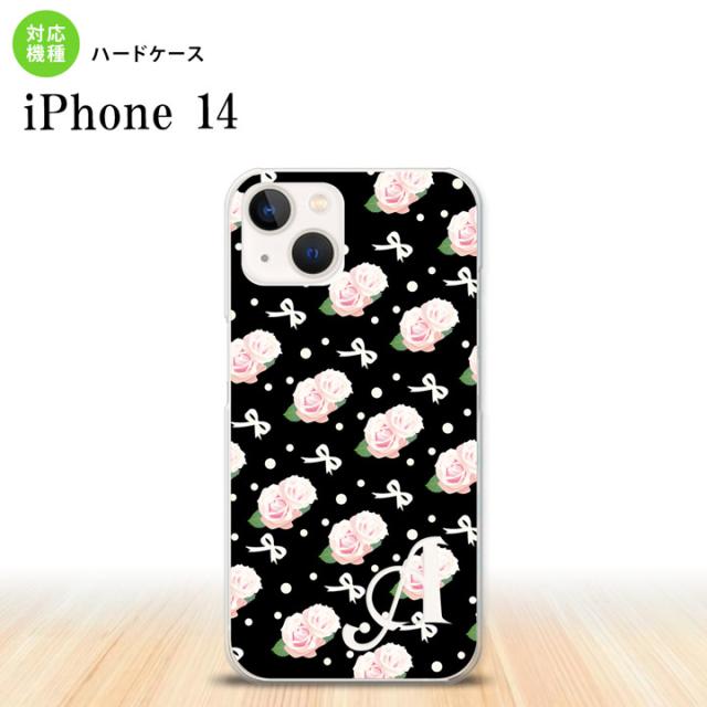 iPhone14 iPhone14 スマホケース 背面ケース ハードケース 花柄 バラ リボン 黒 +アルファベット 2022年 9月発売 nk-i14-257i