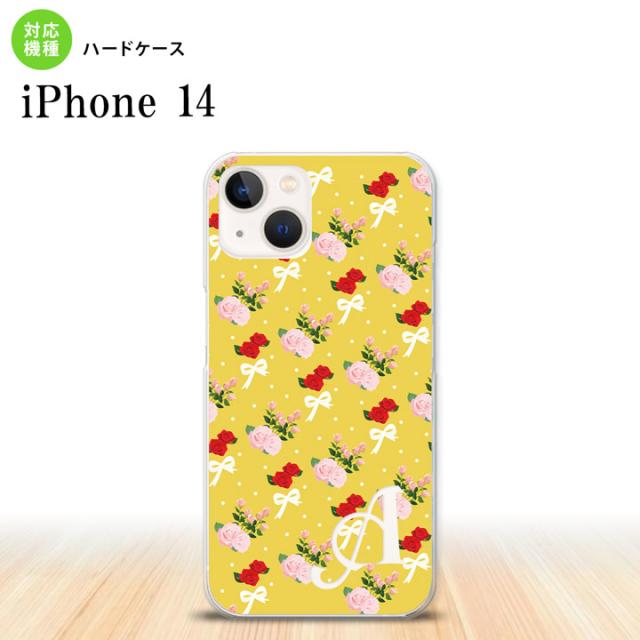 iPhone14 iPhone14 スマホケース 背面ケース ハードケース 花柄 バラ リボン 黄 +アルファベット 2022年 9月発売 nk-i14-263i