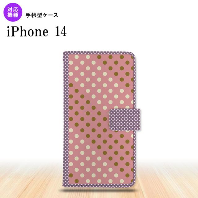 iPhone14 iPhone14 手帳型スマホケース カバー ドット 水玉 サーモンピンク 紫