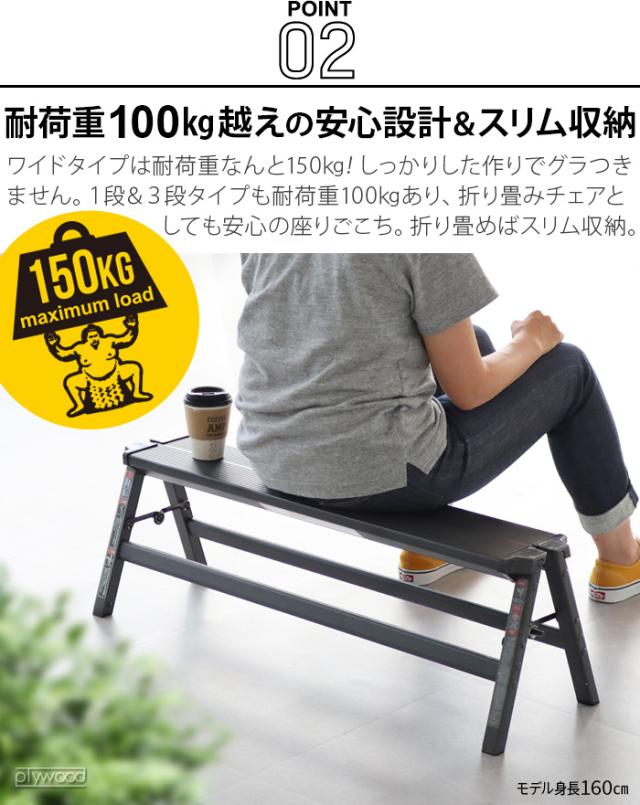 折りたたみ 家庭用 脚立 アルミ プライウッド ステップスツール 1ステップ plywood STEP STOOL 椅子 踏み台 ステップ台 折りたたみスツール キャンプ アウトドア ブラック 黒 棚 オールブラックステップスツール【12時迄のご注文は当日発送★送料無料】