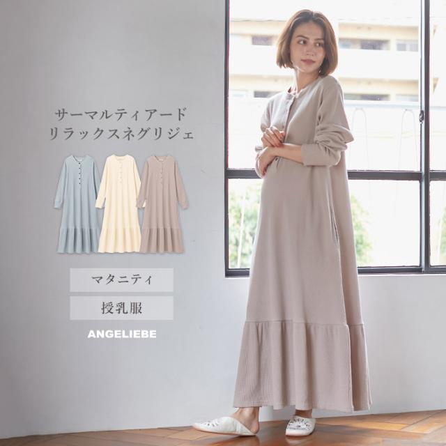 【出産後も長く使える】サーマルティアードリラックスネグリジェ マタニティ・授乳パジャマ