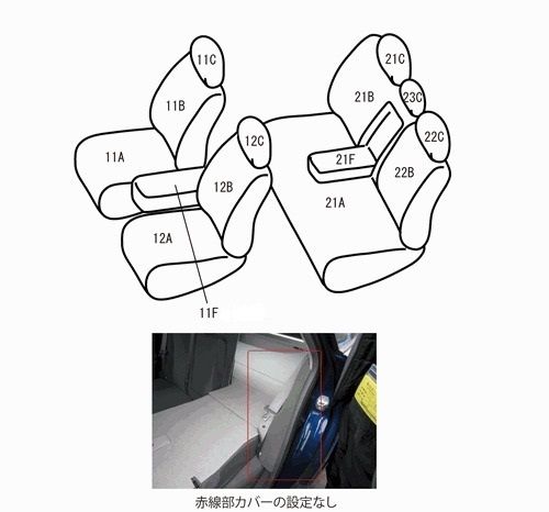 後席背もたれの、リクライニング時にドア側に残るパーツのカバー付属無し